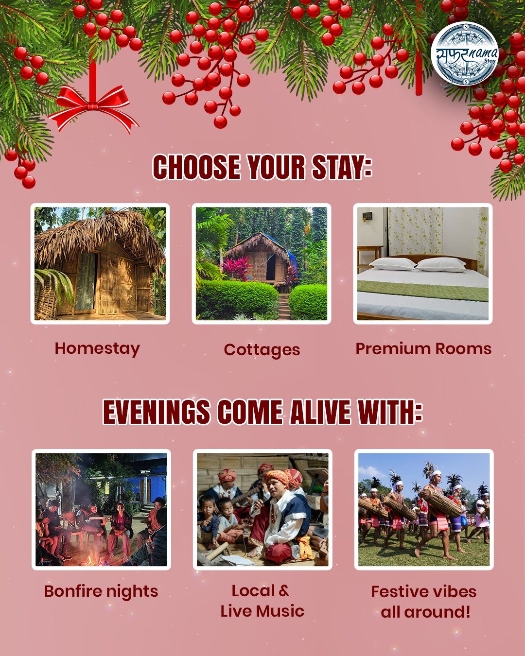 Option to stay in homestay rooms or eco-friendly campsites surrounded by nature.